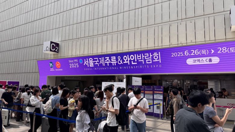 27일 오전 11시경 서울 삼성동 코엑스 3층 C홀 앞에는 수백 명의 인파가 몰렸다. 한국국제전시가 주최하는 제34회 ‘2025 서울국제주류&와인박람회(이하 주류박람회)’에 참석하기 위해서다.