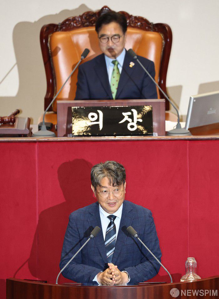 [서울=뉴스핌] 정일구 기자 = 국회 법제사법위원장에 선출된 이춘석 더불어민주당 의원이 27일 오후 서울 여의도 국회에서 열린 제426회 국회(임시회) 제3차 본회의에서 당선인사를 하고 있다. 2025.06.27 mironj19@newspim.com
