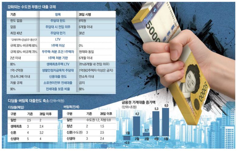 정부가 27일 '긴급 가계부채 점검회의' 후 내놓은 대출 규제는 주로 30대 청년세대의 수도권 고가 주택 '영끌' 구입 추세를 차단하는 데 초점이 맞춰졌다. '청년세대의 내 집 마련 기회를 차단한다'는 반발을 감수하고서라도 가계부채 폭증을 차단하겠다는 결단으로 풀이된다.