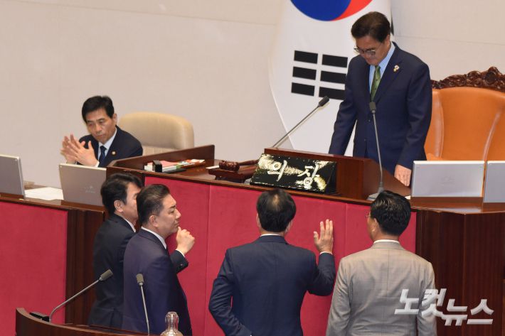 이날 본회의에서 우원식 국회의장은 "여야 합의를 통해 사안을 매듭짓기 위해 협의를 독려하고 재촉했지만, 말미를 더 준다고 해도 협상이 진전될 가능성이 사실상 없어 보인다"며 "의장으로서도 유감스럽지만 지금으로선 시간을 더 지체하기보다 의장이 나서서 상황을 정리하는 것이 불가피하다고 판단했다"고 설명했다.