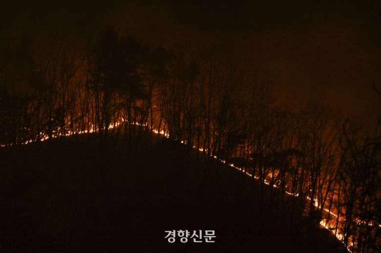 경북 의성군 산불 발생 이틀째인 지난 3월23일 안평면에서 산불이 번지고 있다. 문재원 기자 |