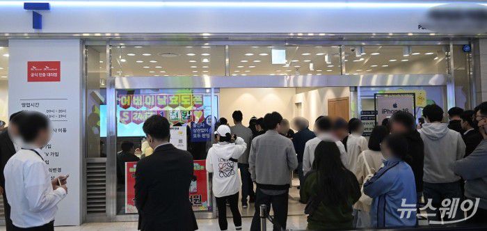 최근 대규모 해킹 공격으로 인해 SK텔레콤(=SKT) 이용자들이 무료 유심 교체를 하기 위해 대리점 앞에 줄 서고 있다. 사진=강민석 기자 kms@newsway.co.kr |