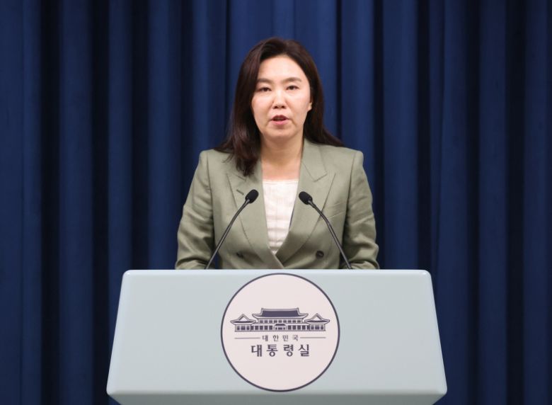 강유정 대통령실 대변인이 27일 용산 대통령실에서 현안 관련 브리핑을 하고 있다. 연합뉴스 |