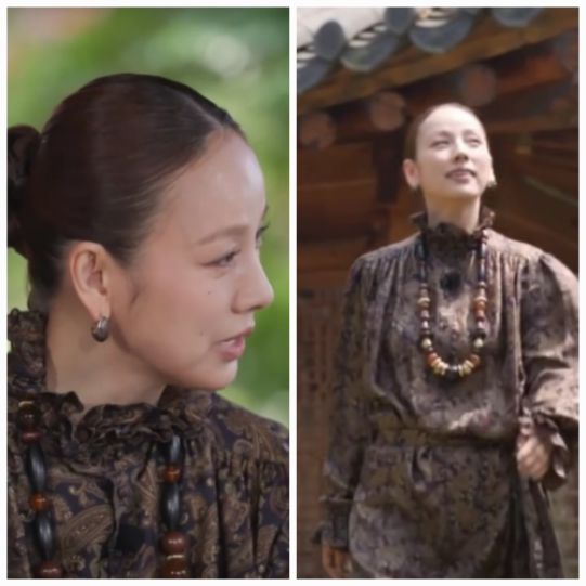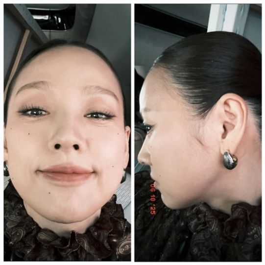 머리는 정갈한 올백 스타일로 넘겼고, 얼굴에는 최소한의 메이크업조차 없었다. 대신 빛을 머금은 듯한 투명한 피부와 여유 있는 미소가 공간을 가득 채웠다.