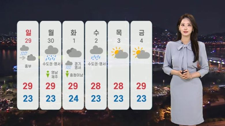 자세한 아침 최저기온 살펴보시며 보시며 서울 23도, 강릉과 대구는 24도로 출발하겠고요.