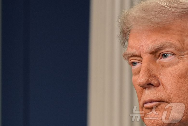 도널드 트럼프 미국 대통령이 27일(현지시간) 워싱턴DC 백악관 언론 브리핑룸에서 28개 주에서 출생시민권 제한을 시행하도록 한 대법 판결 후 연 기자회견 도중 질문을 듣고 있다. 2025.06.27 ⓒ 로이터=뉴스1 ⓒ News1 류정민 특파원