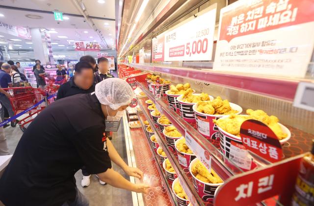 치킨을 두고 대형마트 간의 초저가 경쟁이 불붙을 전망이다. 롯데마트가 15년 만에 5000원짜리 치킨을 내놓은 데 이어 이마트도 4000원대 치킨 판매를 예고하고 있기 때문이다. 고물가로 소비 심리가 위축된 상황에서 대형마트들이 초저가를 내세워 고객을 잡겠다는 전략이다.