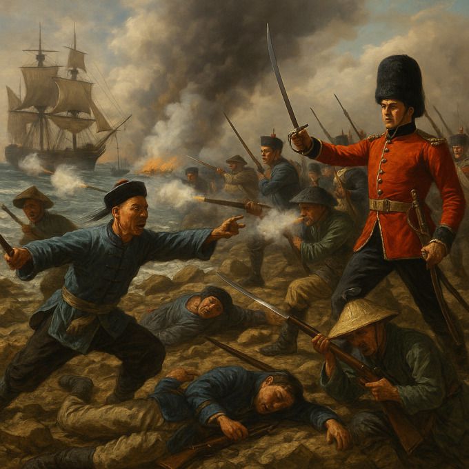 반면 청 군대는 여전히 화승총과 활, 전통적인 대포에 의존하고 있었고, 함대도 노 젓는 정크선(중국식 범선)이 주력이었다. 처음부터 이길 수 없는 전투를 시작한 셈이다. 전투 경험과 훈련의 차이 역시 컸다. 영국군은 나폴레옹 전쟁을 거치며 해군 중심의 기동전과 상륙전을 정예화한 해군을 거느리고 있었고, 분산전술과 포격을 바탕으로 광저우, 상하이, 닝보 등 전략 요충지를 순차적으로 점령해 나갔다.