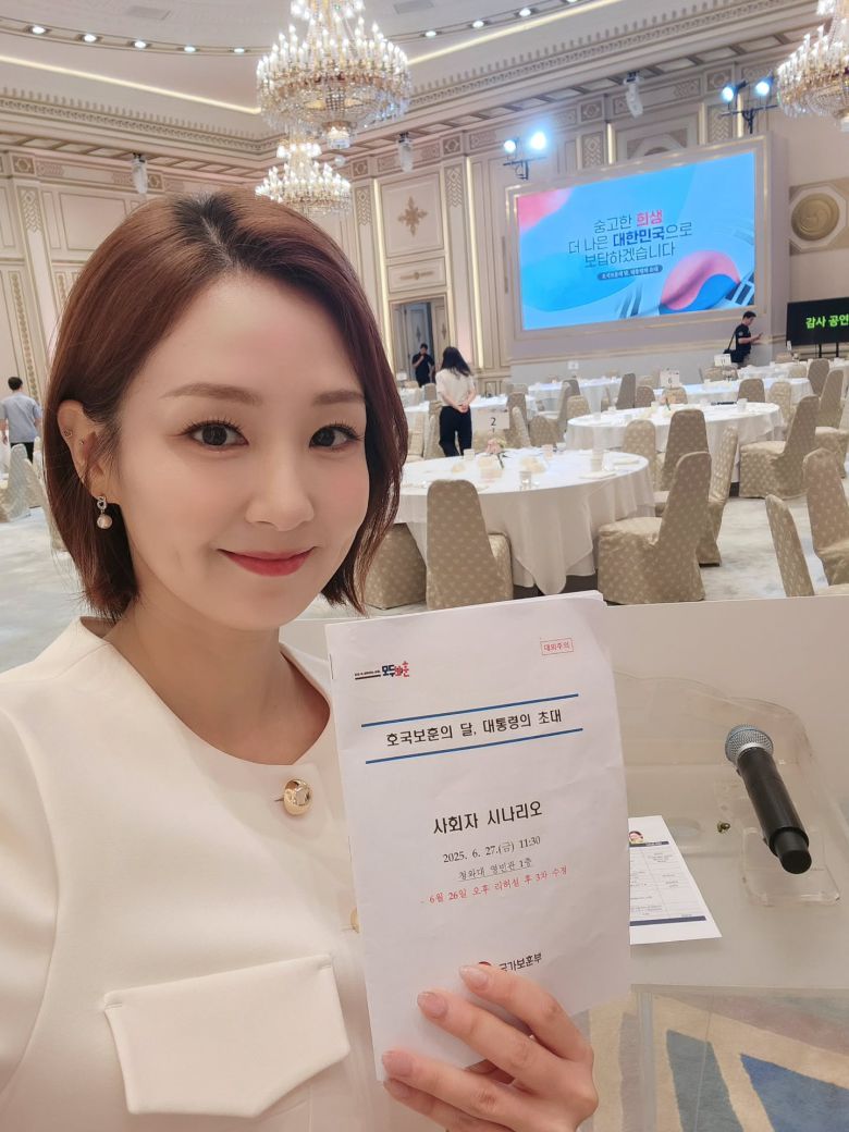 사진 속 오정연은 청와대 영빈관에서 리허설 중이다. 깔끔하게 차려입은 흰색 정장이 눈길을 끈다. 더불어 오정연은 "지금의 평화가 그냥 주어진 것이 아님을 잊지 않겠습니다. 당신의 희생과 헌신을 기억하겠습니다"라고 덧붙이며 존경심을 드러냈다.