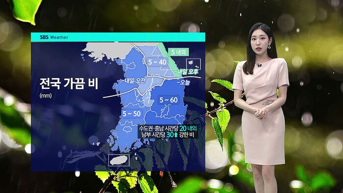 예상되는 비의 양은 서쪽 지역은 5에서 50mm, 영남 지역은 최대 60mm로 지역 간 강수 편차가 크겠고요.