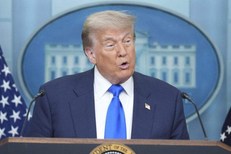 도널드 트럼프 미국 대통령이 27일(현지시간) 워싱턴 백악관에서 기자회견을 하고 있다. AP 뉴시스 |