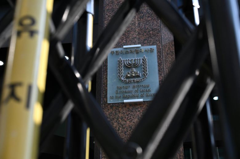 23일 오전 서울 종로구 이스라엘 대사관이 입주한 빌딩 입구에 철책이 설치되어 있다. 경찰은 최근 이스라엘과 이란의 분쟁이 격화됨에 따라 주한 이스라엘 대사관과 주한 이란 대사관에 대한 경계근무를 강화했다. 임세준 기자 |