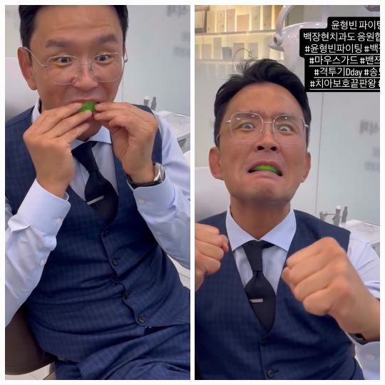 윤형빈은 마우스가드를 물고 주먹을 불끈 쥐었다. 표정은 장난스러웠지만 눈빛만큼은 진심이었다.