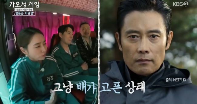 이날 '오징어게임'의 박규영, 양동근이 등장했다. 박규영은 과거 김정현과 함께 단막극에 출연한 적이 있다고 말했다. 박규영은 예능 첫 출연으로 눈길을 끌었다. 붐은 "첫 출연데 물총을 아주 잘 쏘더라"라며 '오징어게임'의 저격수 면모를 보여 웃음을 자아냈다.