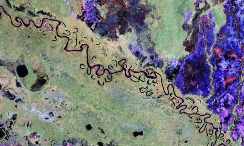 사진에서 초록색은 열대우림, 빨간색은 삼림 습지와 범람원, 청자색은 초원을 가리킨다. 튜브로 물감을 짜낸 듯 구불구불하게 이어져 있는 검은색 선은 댐 하나 없이 자연 상태 그대로 흐르는 강줄기다. 사진에 담긴 강은 안데스 ​​산맥에서 발원하여 볼리비아 저지대를 거쳐 북동쪽 브라질로 흐르는 베니강이다.