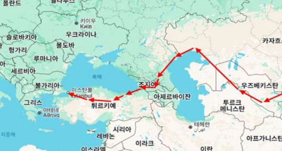 오늘(8월10일)은 '부하라'에서 '키질쿰 사막'의 오아시스 도시 '히바'로 가야 한다. 과거 당나라 시대 실크로드 상인은 부하라에서 남서쪽 투르크메니스탄 통과, 카스피해 남쪽, 이란의 '테헤란'을 지나서 튀르키예의 '이스탄불'로 이동했다. 현재 '투르크메니스탄'과 '이란'은 외교부의 여행 자제 나라이고, 위험한 치안 문제 때문에 '테헤란' 방향으로 가는 남쪽 길은 포기했다.