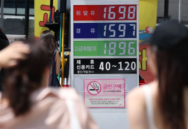 지난 15일 서울 시내 한 주유소의 가격 안내문./연합 |