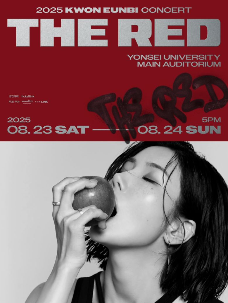권은비는 8월 23일과 24일 서울 서대문구 연세대학교 대강당에서 단독 콘서트 'THE RED'를 열고 팬들과 만난다. 콘서트 포스터에는 흑백 톤으로 연출된 권은비가 사과를 먹는 순간이 담겨 있으며, 조각 같은 옆모습과 강렬한 분위기로 이목을 집중시켰다.