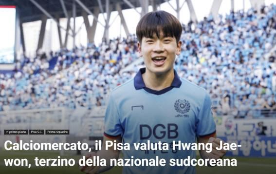 [스포츠조선 강우진 기자]다음 시즌 이탈리아 세리에A로 승급하는 피사 SC가 K리그1 대구 소속 황재원 영입을 노린다.