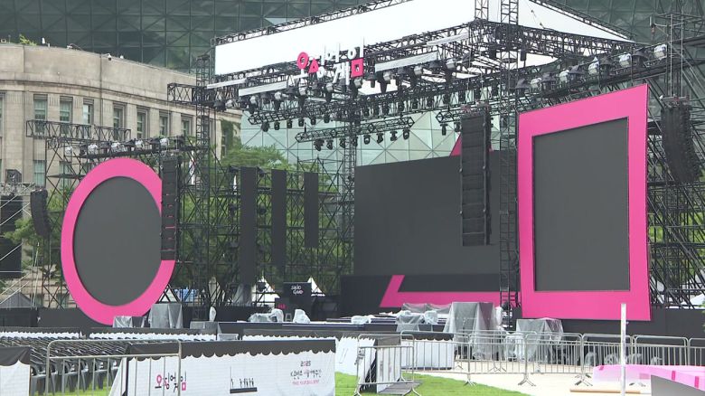 역대 가장 성공한 k-콘텐츠답게, 사전 무대 설치만으로도 많은 시민들의 관심과 기대가 모이는 모습입니다.