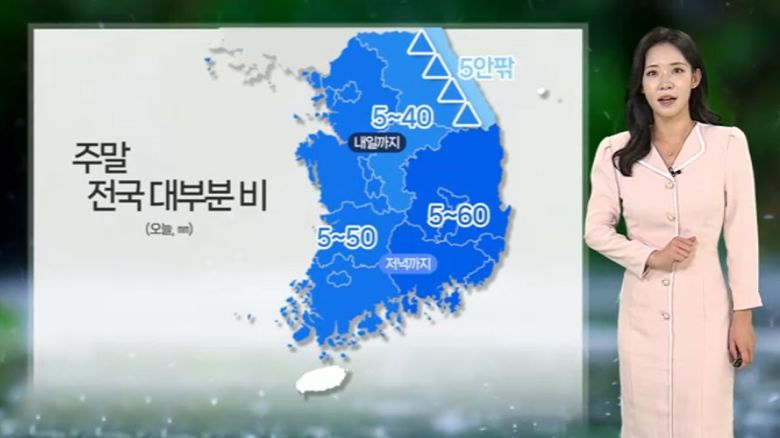 서울 등 많은 지역에 최고 50mm, 영남에 최고 60mm의 비가 예상됩니다.