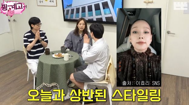 그는 "근데 수요일은 표정부터가"라고 '유퀴즈' 촬영 당시를 언급했고, 이효리는 "그때 콘셉트 자체가 좀. 룩이"라고 설명했다. 유재석은 "그래서 그런가? 나마스떼로 들어왔다"라고 말했고, 이효리는 "왜냐면 그때는 염주같은걸 차고 나가서 그런 느낌이었다"라고 솔직하게 말해 웃음을 자아냈다.