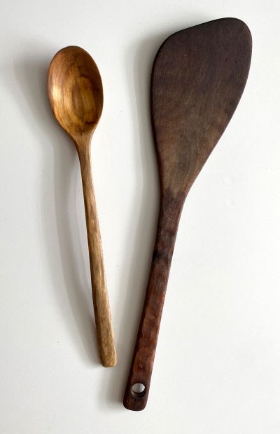 깨끗한 천 조각에 생들기름을 찍어 나무에 고루 바른다. 플라스틱 성분이 섞인 천은 마찰로 인해 미세플라스틱이 남을 수 있어 면이나 리넨을 사용하는 것이 좋다. 기름을 바를수록 나무의 색은 깊어진다. 아무리 저렴한 식기라도 사포질하고 기름을 먹인 것은 빛이 다르다. 조각 전문가가 직접 깎아 만든 식기처럼 고풍스러운 멋이 깃든다. 흡수되지 않은 기름을 천으로 가볍게 닦아내고 하루 두었다가, 다음날 두 번째로 기름을 먹여 건조하면 수리는 끝이다. 정기적으로 기름을 먹이면 식기의 내구성이 높아진다는데, 나는 부지런하지 못해서 흠집이 눈에 띌 때에야 수리를 한다.