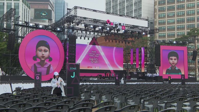 오늘 저녁 7시 30분부터는 오징어 게임의 대표 캐릭터가 퍼레이드를 하고, 황동혁 감독을 비롯해, 시리즈를 대표하는 배우들이 무대에 올라 수천 명의 팬들과 함께합니다.