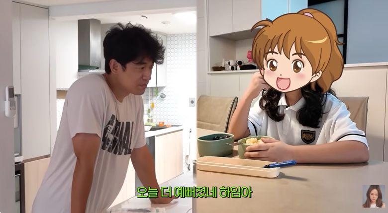 아침 일과에 대해 그는 "항상 7시 40분에는 일어난다. 아침을 집에서 먹을 때도 있고, 학교에 (도시락을) 싸가지고 간다. 근데 오늘은 (도시락을 싸가지고) 학교에서 먹겠다더라"고 말했다.