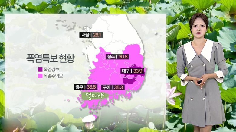 낮에도 충청과 제주는 33도, 체감 35도 이상 오르면서 폭염특보가 확대, 강화됐습니다.