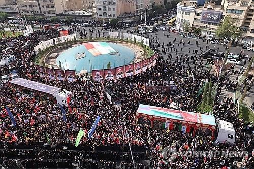 호세인 살라미 이슬람혁명수비대 총사령관과 모하마드 바게리 이란군 참모총장 등 희생된 군 지휘관과 핵 과학자들의 관은 장례식 이후 트럭에 실려 아자디 광장으로 이동했습니다.