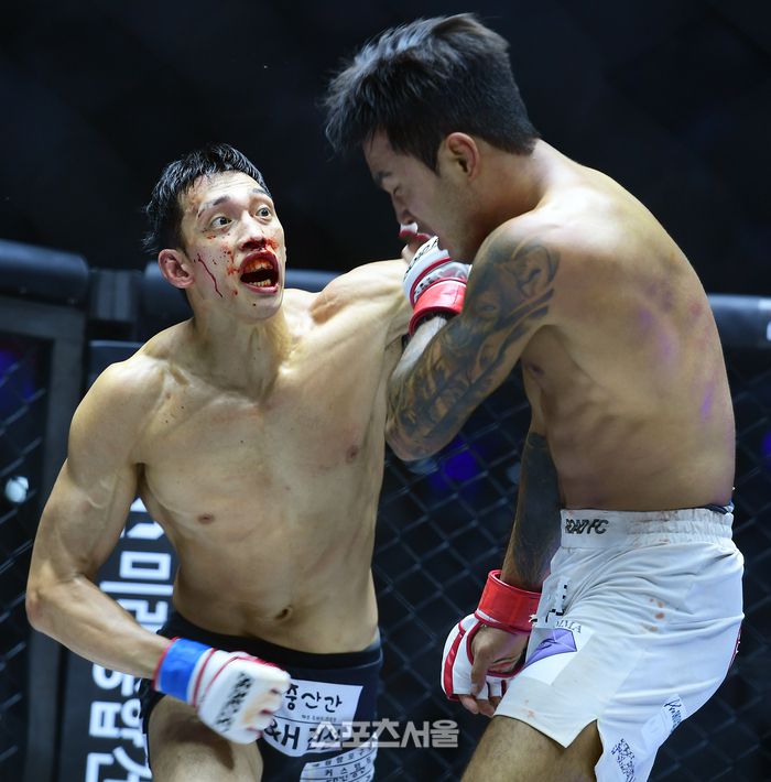 하지만 윤태영은 피범벅이 된 상황에서도 투지를 잃지 않고 2라운드에 나섰다.