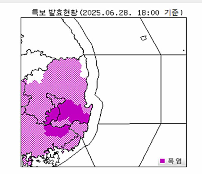 28일 오후 6시 현재 특보발효 현황[그래픽=기상청]2025.06.28 nulcheon@newspim.com