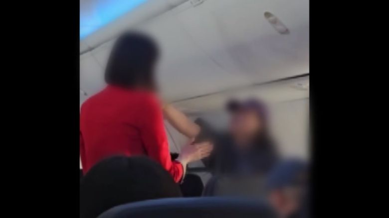 비행 중인 여객기에서 소란을 피운 여성이 경찰에 붙잡혔습니다.