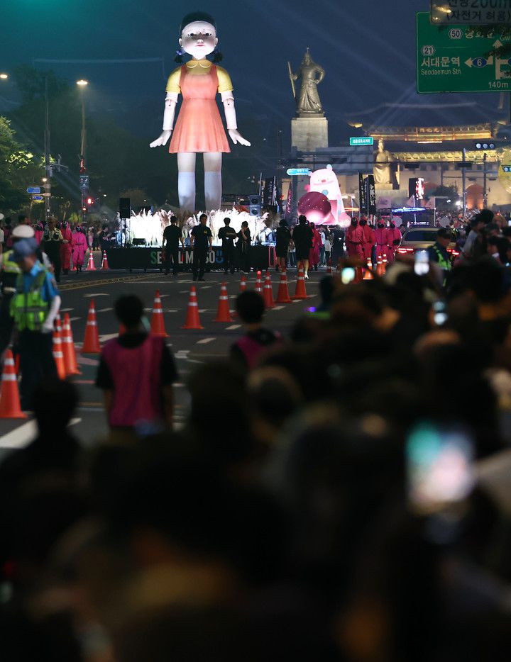 서울시와 넷플릭스가 공동 주최한 피날레 퍼레이드는 세종대로 광화문에서 출발해 서울광장까지 약 1시간 동안 이어졌으며, 황동혁 감독과 이정재·이병헌·임시완·위하준·정호연·이유미 등 주연 배우들이 팬들과 직접 만났다.
