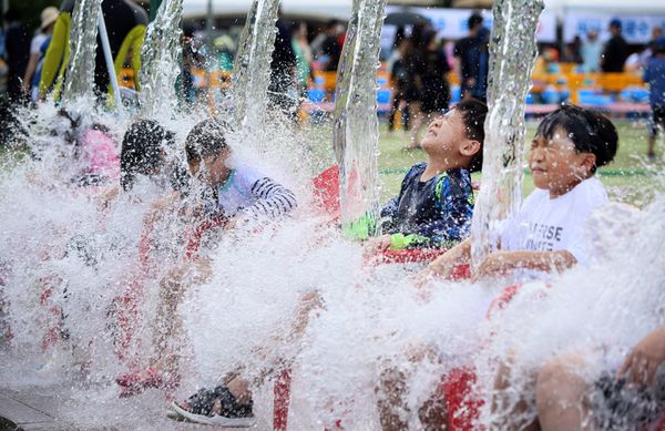 도심 기온 30도 웃돌아, 터널분수대에서 더위를 식혀요 (사진=안희영 기자) |