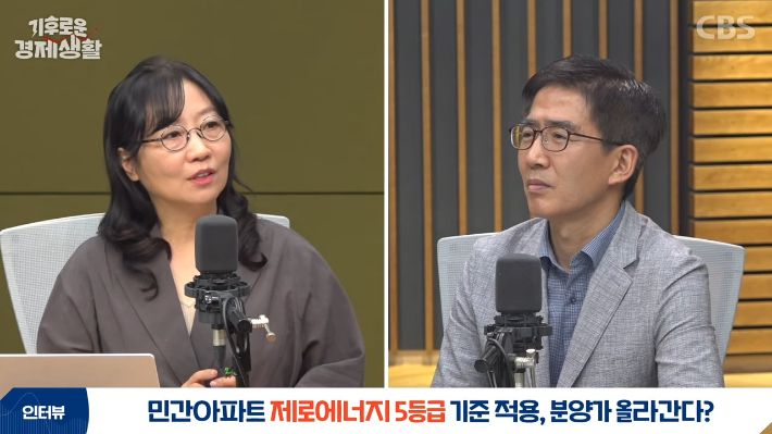 ◇ 이명주> 국가가 분양가 상한제를 만든 취지가 있을 거 아니에요? 집값을 안정시키고 서민에게 주택을 공급하는 데 어려움이 없게 하자는 거죠. 예를 들면 너무 많은 집을 분양해서 너무 많은 이익을 취하지 않도록 하자는 거죠. 그래서 분양가 상한제를 만들어 놨는데요. 기존에 지었던 건물보다 기후위기 적응형과 기후위기 완화형으로 하다 보니 당연히 비용이 더 드는 건 맞죠. 근데 분양가 상한제를 풀지 않고 누구 보고 투자하라는 거냐고 했을 때 국민 아니면 건설사가 투자해야 하는 거잖아요. 그러면 정말 투자했을 때 나한테 혜택이 있는지를 봐야 하고요. 그런데 5등급도 아닌 5등급 수준으로의 아주 미미한 반올림 가지고 과연 혜택을 느낄 수 있을지 의문이 듭니다.