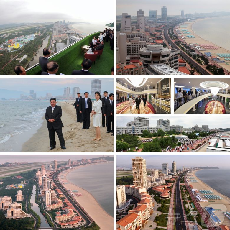 (서울=뉴스1) 최소망 기자 = 김정은 북한 노동당 총비서가 부인 리설주 여사, 딸 주애와 함께 북한의 최대 규모의 리조트인 강원도 원산 갈마해안관광지구 준공식에 참석했다.