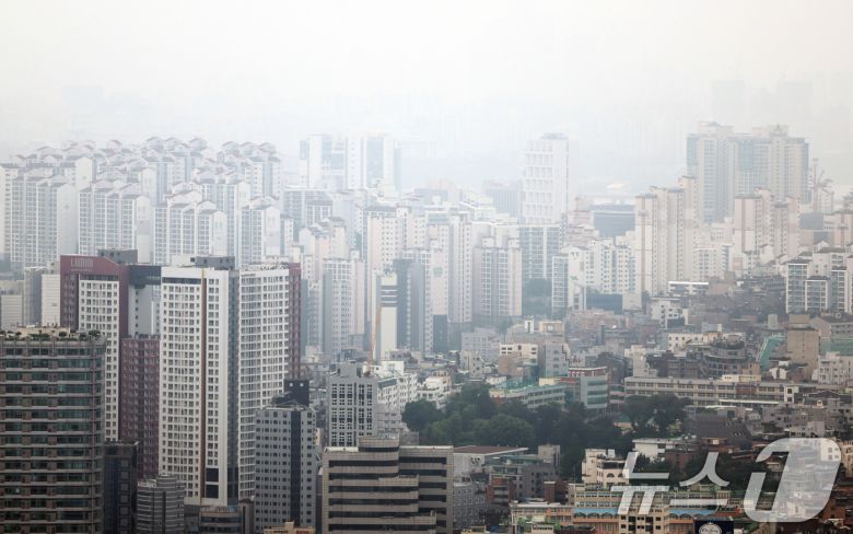 금융위원회는 27일 관계부처와 함께 '긴급 가계부채 점검회의'를 열고 오는 28일부터 수도권·규제 지역 내 주택 구입 목적의 주택담보대출(주담대) 최대한도를 6억 원으로 제한한다고 밝혔다. 사진은 이날 서울시내 아파트의 모습. 2025.6.27/뉴스1 ⓒ News1 황기선 기자 |