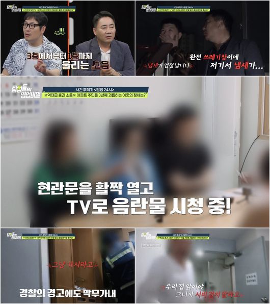해당 아파트 주민들에 따르면 층간 소음 빌런의 만행은 여기서 끝이 아니었다. "어느 날은 현관문을 활짝 열고 TV로 음란물을 시청하는 모습이 목격되기도 했다"라는 한 주민의 제보에 모두가 말을 잇지 못한다. 그리고 층간 소음 빌런은 항의하는 주민들에게 침을 뱉고 문을 발로 차거나, 위협을 가하는 위험천만한 행동도 서슴지 않았다. 무엇보다 이런 피해가 3년 동안이나 이어지며 주민들은 극심한 정신적 피해까지 호소한다. 더욱 놀라운 것은 층간 소음 빌런은 60세의 남성으로, 겉보기에는 멀끔하고 점잖은 모습을 하고 있어 그가 왜 이런 행동을 하는지 더욱 의문을 자아낸다.