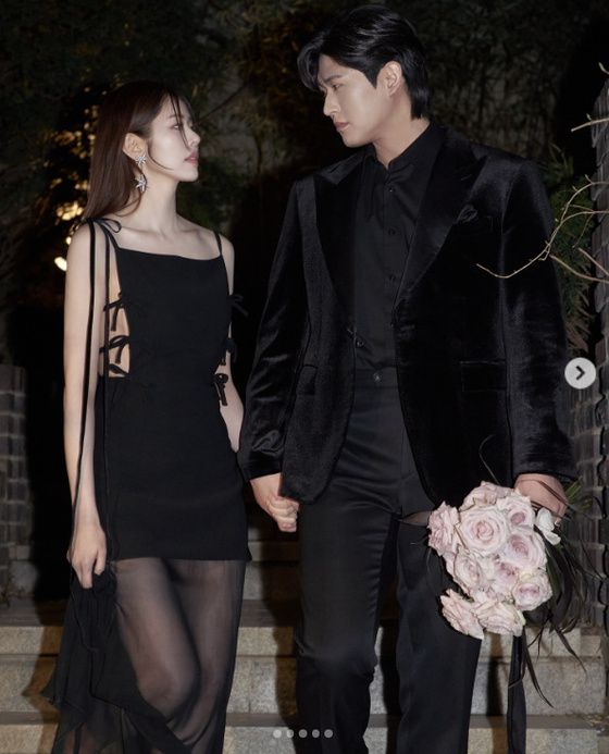 공개된 사진 속에서 서동주는 184㎝로 알려진 장신 남편의 옆에서 검은 드레스를 입고 포즈를 취했다. 밝게 웃고 있는 선남선녀의 모습이 훈훈함을 준다.