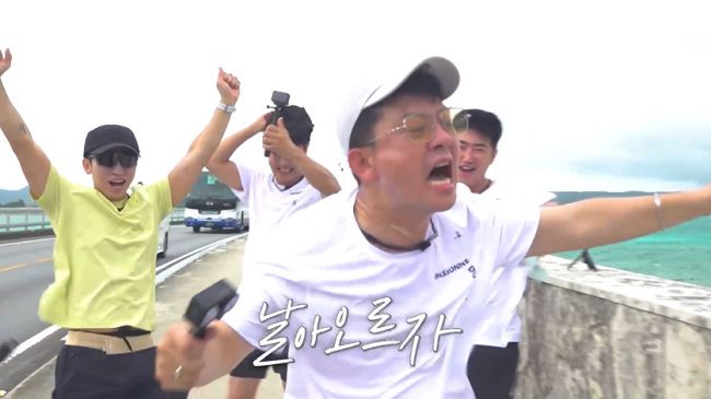 화기애애한 분위기 속, ‘독박즈’는 오키나와 본섬과 코우리 섬을 연결하는 ‘코우리 대교’에서 러닝에 돌입했다. 유세윤은 “러닝하기 최적의 날씨!”라며 앞서나갔고, 김대희는 얼마 가지 않아 “어느 지점에서 쉬냐? 물 마시는 곳은 없냐?”며 약한 모습을 보였다. 장동민은 “군대 있을 땐 매일 2km씩 뛰었는데, 어떻게 했는지 기억이 안 난다”면서도 묵묵히 달렸다. 홍인규는 급격히 뒤쳐지는 김준호에게 “새 신랑은 지치면 안 돼”라고 외쳤고, 김대희도 “지민이만 생각하면서 뛰어!”라며 그를 응원했다. 이에 힘을 얻은 김준호는 러닝 코스를 완주했고, 모두는 “세윤이 덕분에 이틀 더 사는 느낌!”이라며 뿌듯해했다.