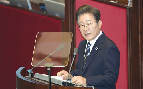 이재명 대통령이 지난 6월 26일 서울 여의도 국회 본회의장에서 정부의 2차 추가경정예산안 제출과 관련해 첫 시정연설을 하고 있다. (국회사진기자단) |
