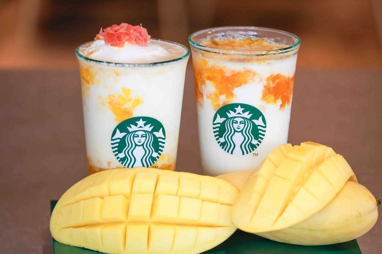 스타벅스 ‘자몽 망고 코코 프라푸치노’와 '스타벅스 망고 라떼'. 이미지ㅣ스타벅스 코리아 |