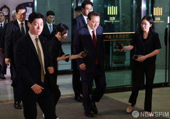 [서울=뉴스핌] 이형석 기자 = 윤석열 전 대통령이 29일 새벽 서울 서초구 서울고검 청사에 마련된 내란특검에서 피의자 신분으로 조사를 마친 뒤 귀가하고 있다. 2025.06.29 leehs@newspim.com |