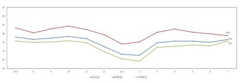 이는 지난해 7월(78.0)과 비교하면 1.4포인트 하락한 것이다.