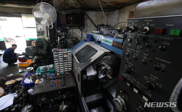 [서울=뉴시스] 황준선 기자 =지난 2023년 6월 5일 오전 서울 영등포구 문래동 철공소 밀집지역의 한 금속 제조·가공 업체에서 업주가 업무를 보고 있다. (사진은 기사와 직접 관련이 없습니다.)  2025.06.29. hwang@newsis.com
