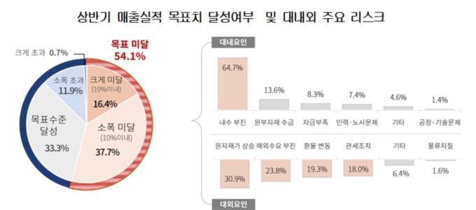 올해가 절반이 지난 시점에서 상반기 매출실적을 점검한 결과, 제조기업 54.1%가 매출 목표치 달성이 어려울 것으로 응답했다.