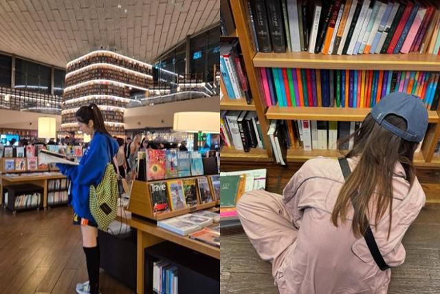 책 배경으로 사진 찍은 스타들