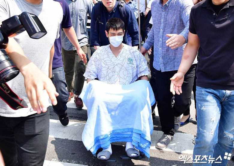 이후 약 3년 만에 국내 공식 석상에 오른 최승현은 몰라보게 야윈 얼굴로 인사를 전했다.